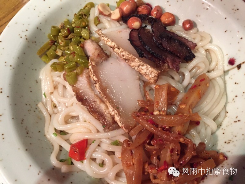 我是因为牛巴爱上的牛巴粉,牛巴由黄牛臀肉混合八角等多味香料腌制而成,在广西最出名的应该就是吴昌记牛巴了吧,每次也只舍得在过年的时候买一盒。牛巴粉的粉是类似陈村粉一样的宽褶皱粉,它的特点是松软,易入味。宽粉上铺就一层牛巴,淋上一层汁水,便可以直接品尝了。